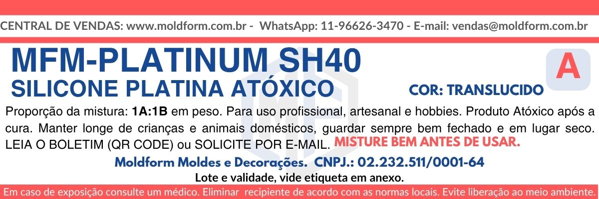 O MFM-PLATINUM 40 – é um silicone PLATINA de grau alimentício bi componente translúcido.