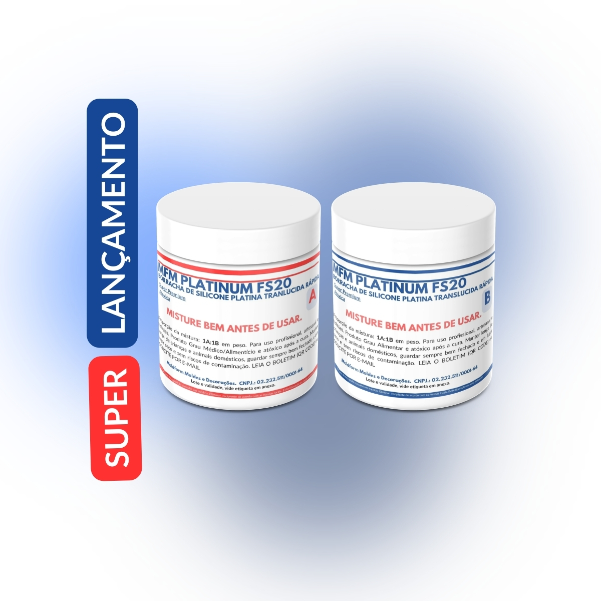O MFM-PLATINUM FS20 – é um silicone PLATINA de grau alimentício de vulcanização rápida, bi componente translúcido com ótima dureza intermediária.
